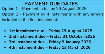 Paying by instalments refers only to the option listed on your initial Rates notice of 4 (four) predetermined amounts. When paying by instalments, you must pay the exact instalment amount on or before the due date to avoid late payment fees and trigger production of the next instalment notice reminder. If you pay anything other than the exact listed amount, whether a higher amount of lower amount, the system will not place you on instalments. In this case, you will need to contact the Rates Officer on 9734 9000 and request to be placed on instalments. Failure to do so may result in interest accruing on your remaining balance and a Final Notice being issued instead of an Instalment Reminder Notice.